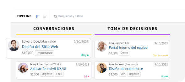 Observa en tiempo real el progreso de tus oportunidades de venta a través de una vista tipo kanban.